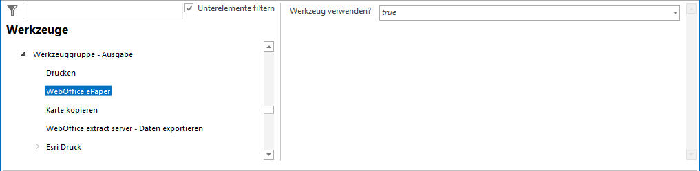 Legt fest, ob das Werkzeug bzw. die Funktion im WebOffice core Client verwendet werden soll oder nicht. |